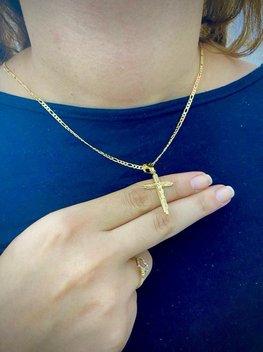 NEW Cross Necklace Figaro Chain 14K Gold Filled Gifts Crucifix Charm 30x18