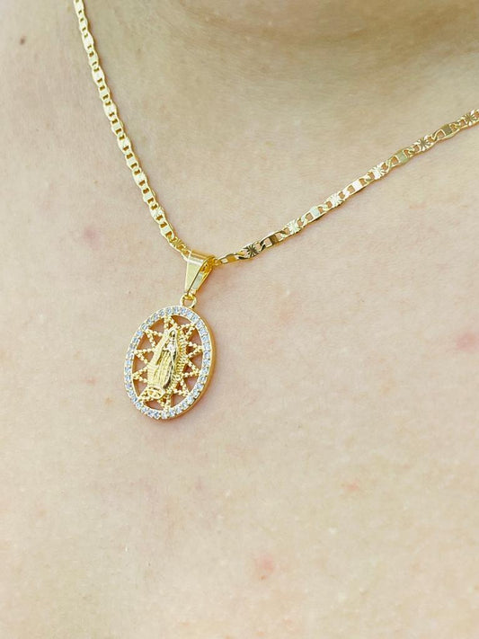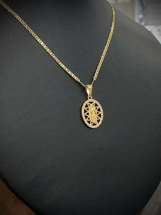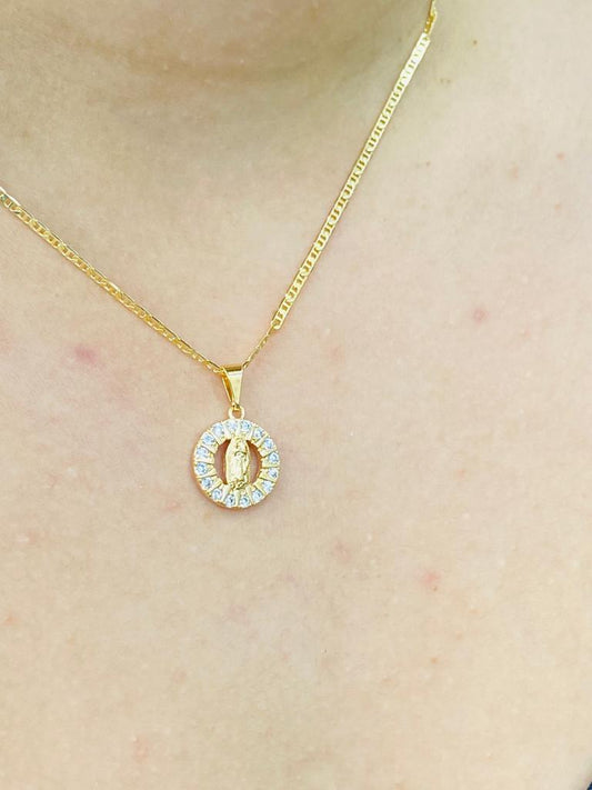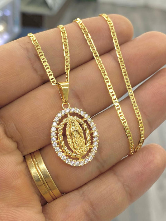 Round CZ Virgen de Guadalupe Necklace Mariner Chain Gold Filled Gifts Jewel
