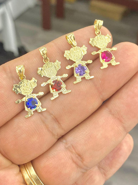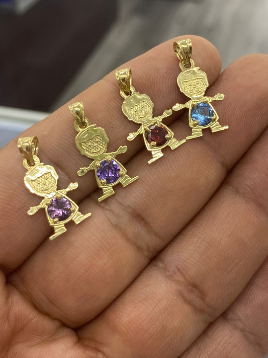 14K Yellow Gold Little Girls Pendant Birthstones Charm for Womens Moms Gifts
