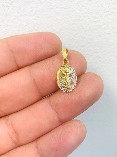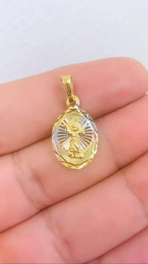 New Design Divino Niño Pendant Diamond Cut Tri Color Medal 20x13mm for Womens Mens / Dianty Baby Jesus Pendant / Dije Divino Niño Tres Oros