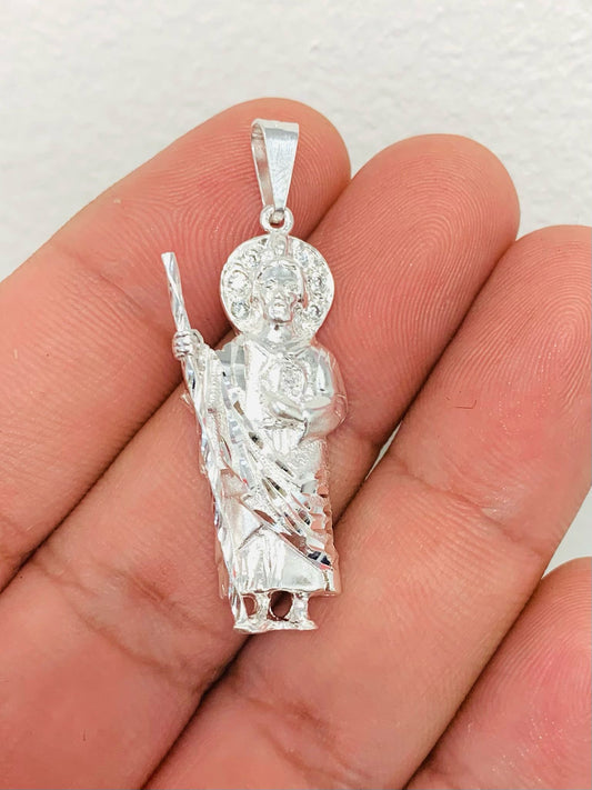 925 Sterling Silver CZ San Judas Pendant 1.5" 5g Unisex / Dije de San Judas en Plata Pura
