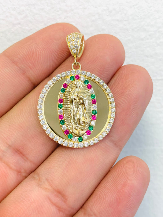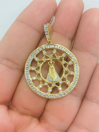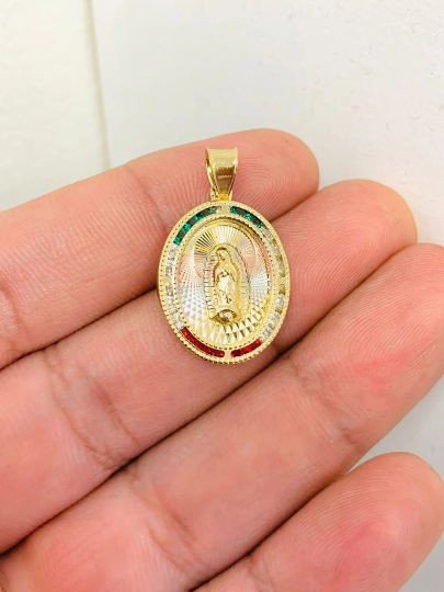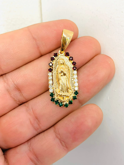 Virgin Mary Pendant CZ Stones for Women's Men's Tri Color Pendant / Dije de la Virgen Maria Oro 28x20mm / Gold Filled Dainty Virgin Pendant / Medalla de la Virgem Maria