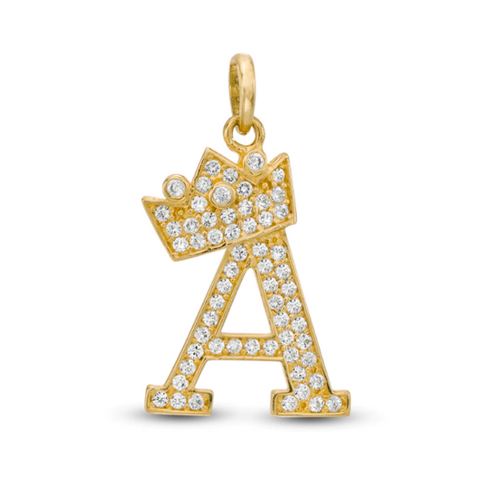 Cubic Zirconia "A" Initial with Tilted Crown Necklace Charm in 14K Gold / Charm Initials Letters Pendants