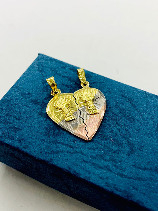 Dainty Divino Nino Broken Heart Pendant Tri Color Gold Filled Womens Everyday Heart Pendant 25x22 Dije Divino Nino Corazón Partido para Parejas