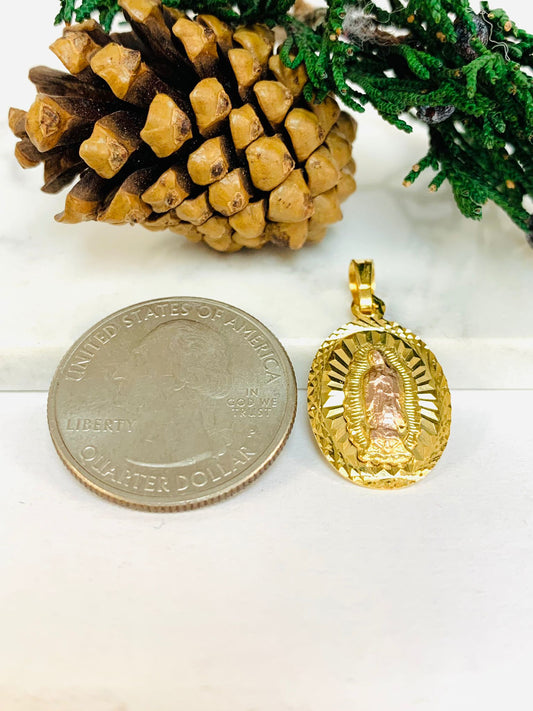 Medalla de la Virgen de Guadalupe Tres Oros Para Mujer/ Gold Filled Virgen de Guadalupe Pendant Women's Men's 24x18mm Dainty Pendant Jewelry