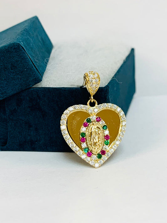 Guadalupe Heart Pendant CZ Solid Yellow Gold 14K For Womens / Our Lady of Guadalupe Pendant / Dijes