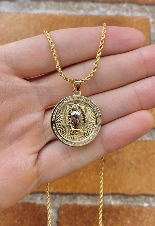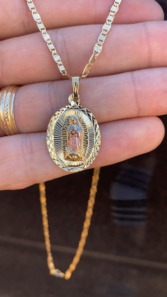 14K Gold Filled Virgen de Guadalupe Necklace for Womens Snail Chain 20" Gifts