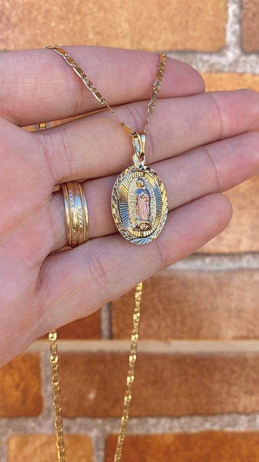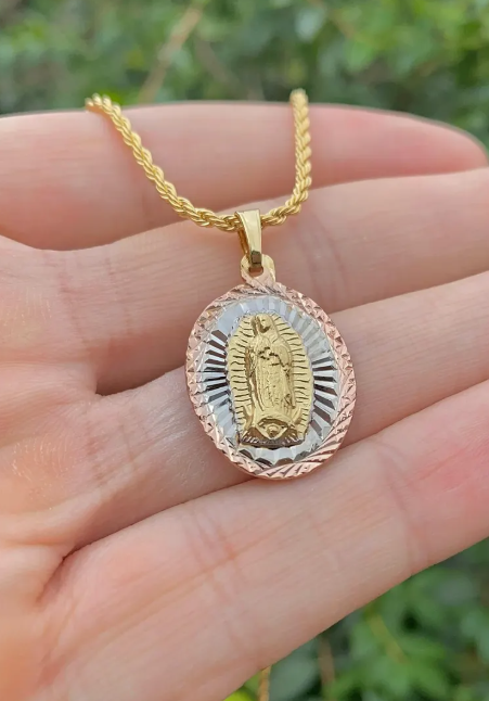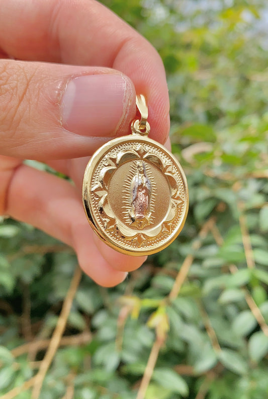 14K Gold Filled Virgen de Guadalupe Pendant Charm 30x26mm Tri Color