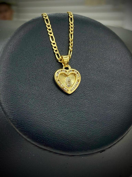 CZ Heart Virgen de Guadalupe Necklace Pendant 19x18 Valentino Chain 14K Gold Filled Womens