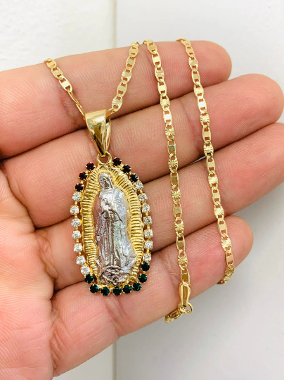 Virgen de Guadalupe Necklace Pendant Chain Valentino 20" Womens Mens Gold Filled Jewelry Best Quality Necklace Cadena y Dije de la Guadalupe