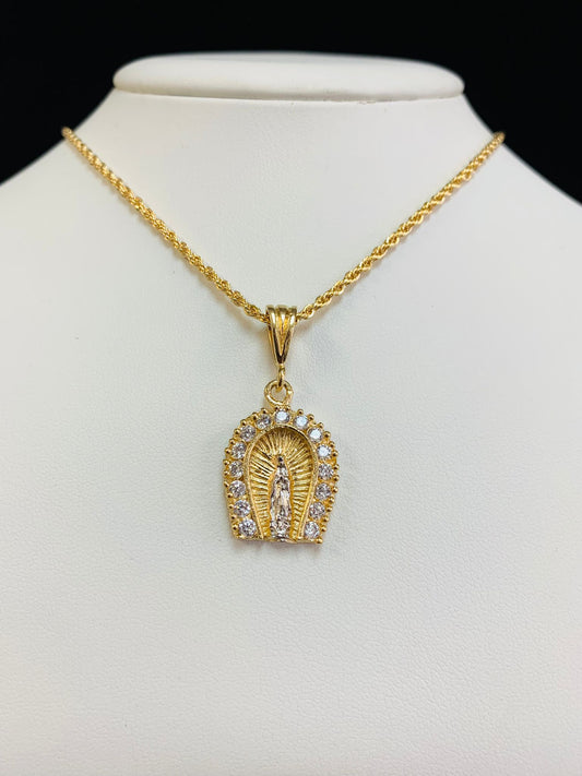 Cadena y Dije de la Virgen de Guadalupe en Oro Laminado/ Virgen de Guadalupe Necklace/ Guadalupe Jewelry/ Womens Necklace 20" / Everyday Necklace