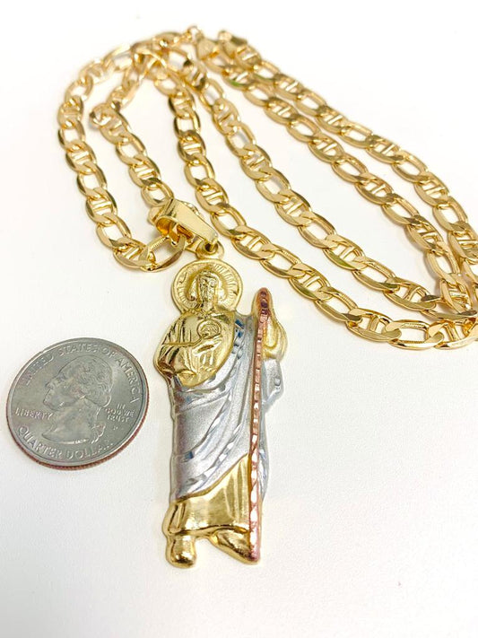18K Gold Filled San Judas Pendant Necklace 24" 2.5"x1" 20g 6mm For Mens