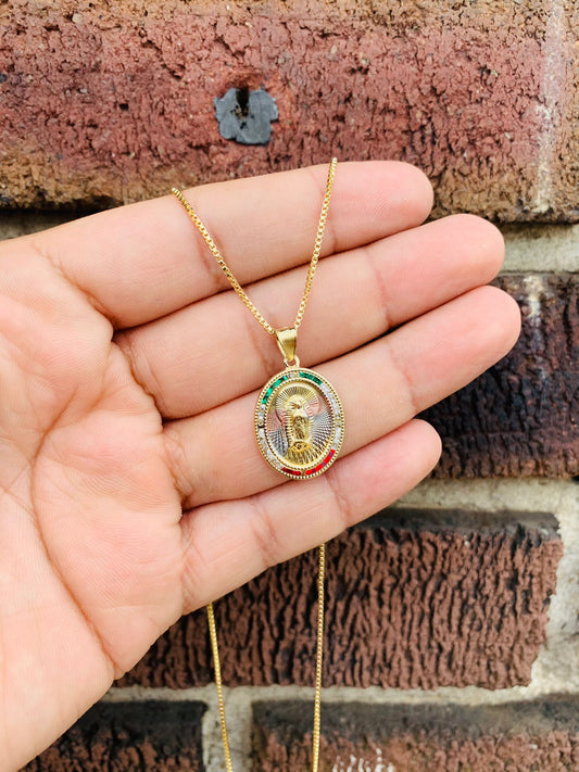 14K Tri-Color Real Gold Chain and Medal Set 20" 21x18mm Bezel Valentino Gold Chain with Virgen de Guadalupe Pendant/ Cadena y Dije Guadalupe