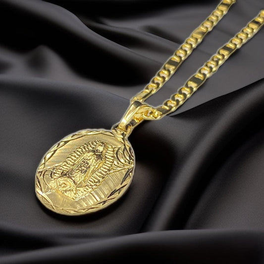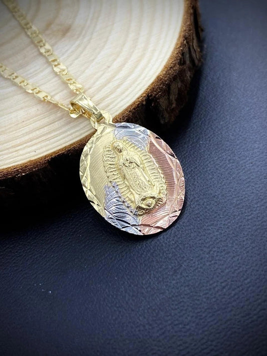 14K Gold Filled Virgen de Guadalupe Necklace Pendant Charm 20x13mm Diamlond Cut Pendant Guadalupe Charm / Cadena de Guadalupe Oro Laminado