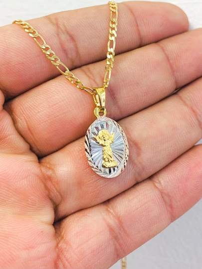 18K Gold Filled Divino Niño Necklace 20" Figaro Link 20x13mm / Divino Nino Pendant / Regalos de Navidad / Dije del Divino Nino Con Cadena Figaro Link