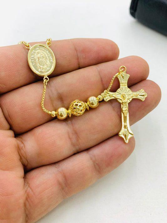 14K Gold Filled Virgen de Guadalupe Rosary / Yellow Beads Rosary 18" / Catholics Necklace/ Rosario de la Virgen de Guadalupe en Oro Laminado