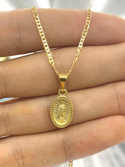 14K Yellow Gold Filled Virgen de Guadalupe Necklace 14x8mm / Cadena y Dije de la Virgencita de Guadalupe