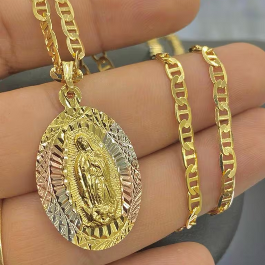 14K Gold Filled Virgen de Guadalupe Necklace / Diamond Cut Necklace / Mariner Link Chain 18" / Guadalupe Pendant 26x18mm / Cadena y Dije de la Virgen de Guadalupe en Oro Laminado