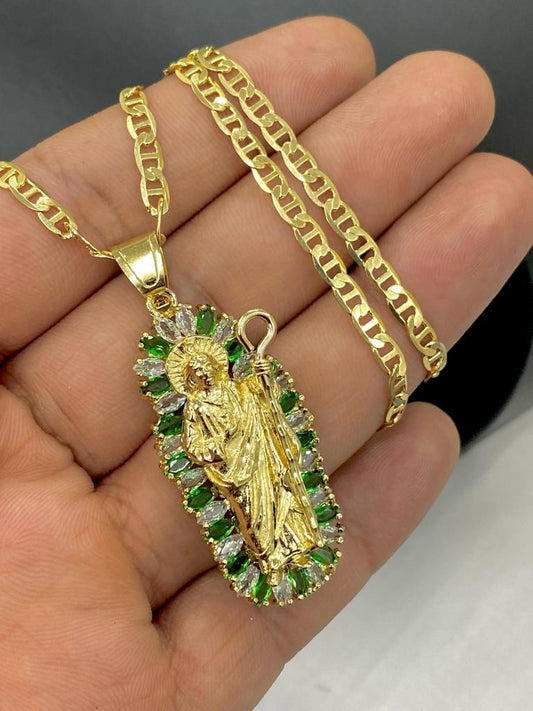 San Judas Necklace CZ Pendant Charm St Jude 14K Gold Filled Mariner Chain Men Women Dije San Juditas