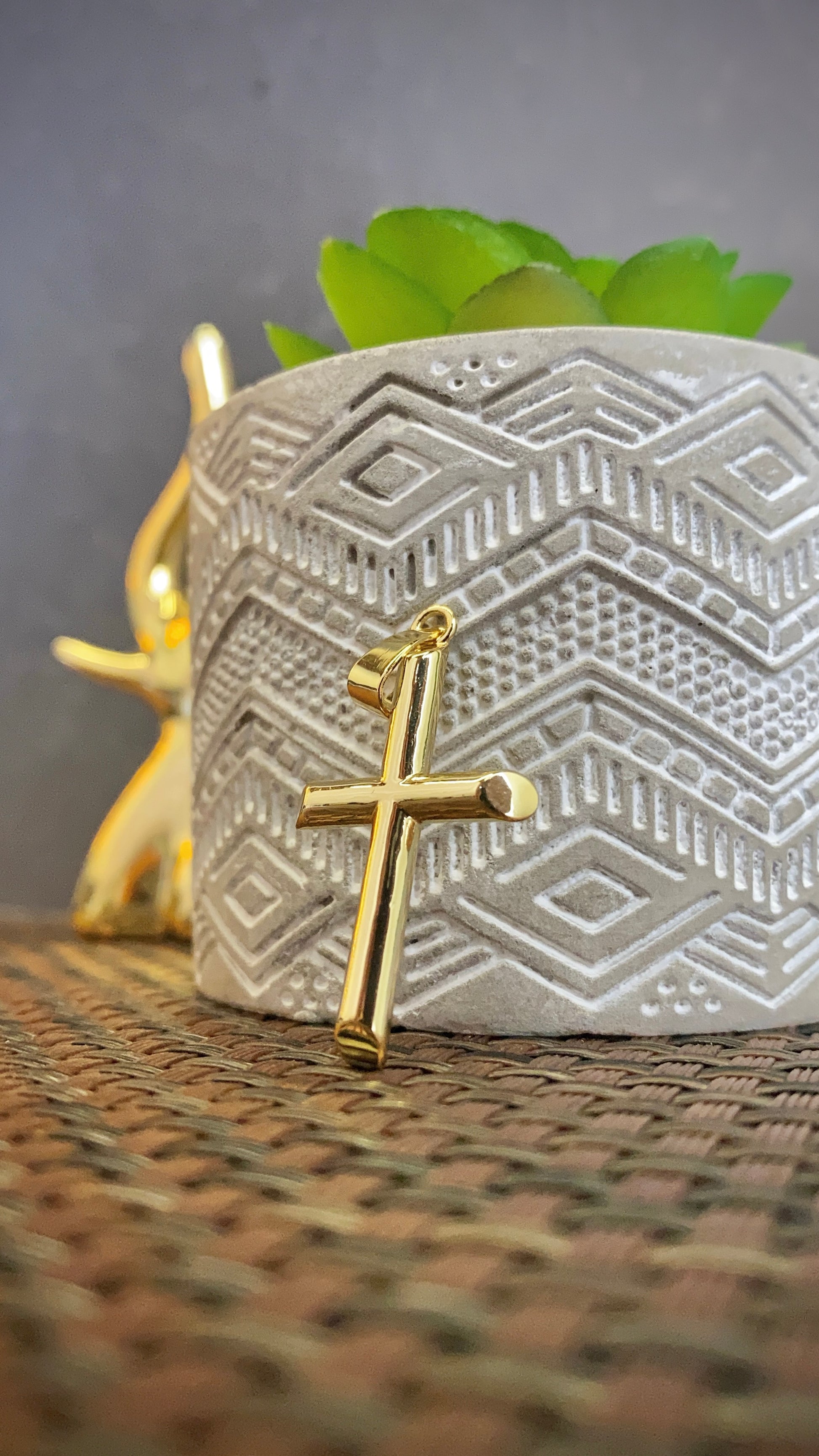 Timeless and elegant, this 14K Gold Filled Cross Pendant is a powerful symbol of faith and devotion. Measuring 35x20mm, it features a sleek and classic design that adds a meaningful touch to any chain.