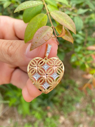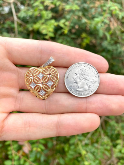18K Gold Filled Heart CZ Pendant 24x25mm