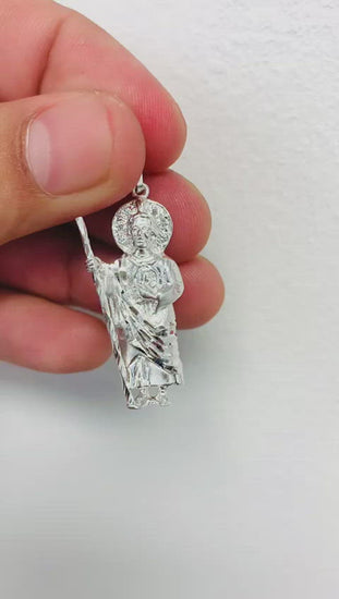 925 Sterling Silver CZ San Judas Pendant 1.5" 5g Unisex / Dije de San Judas en Plata Pura