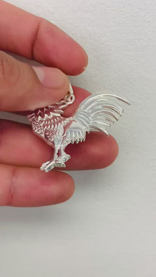 Chicken Rooster Pendant 1.7x1.5" Unisex Sterling Silver/Dije De Gallo Plata Pura