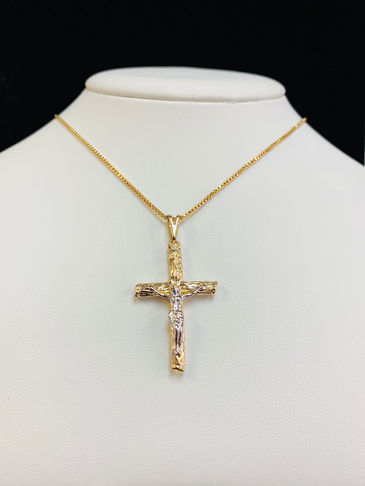 Womens Cross Necklace with Box Link Chain / Everyday Necklace for Womens Ladies Mens / Dainty Cross Pendant / Cadena de Cruz Oro