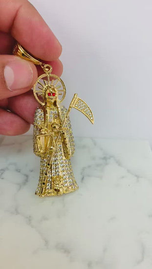 CZ Santa Muerte Pendant 2.6x1.2" 18g / Gold Filled Santa Muerte Pendant / Dije De La Santa Muerte