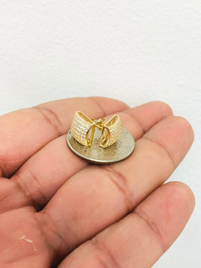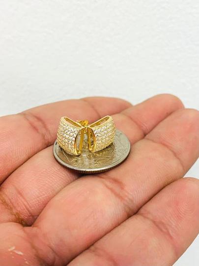 CZ Stud Gold Earrings Push Back / 10K Solid Yellow Gold Womens Earrings 9x9mm