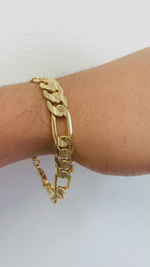 Figaro Link Diamond Cut Bracelet 10mm ● Men's Bracelet 8.5" ● Bracelet ● Men's Jewelry ● 18K Gold Filled Bracelet 24g