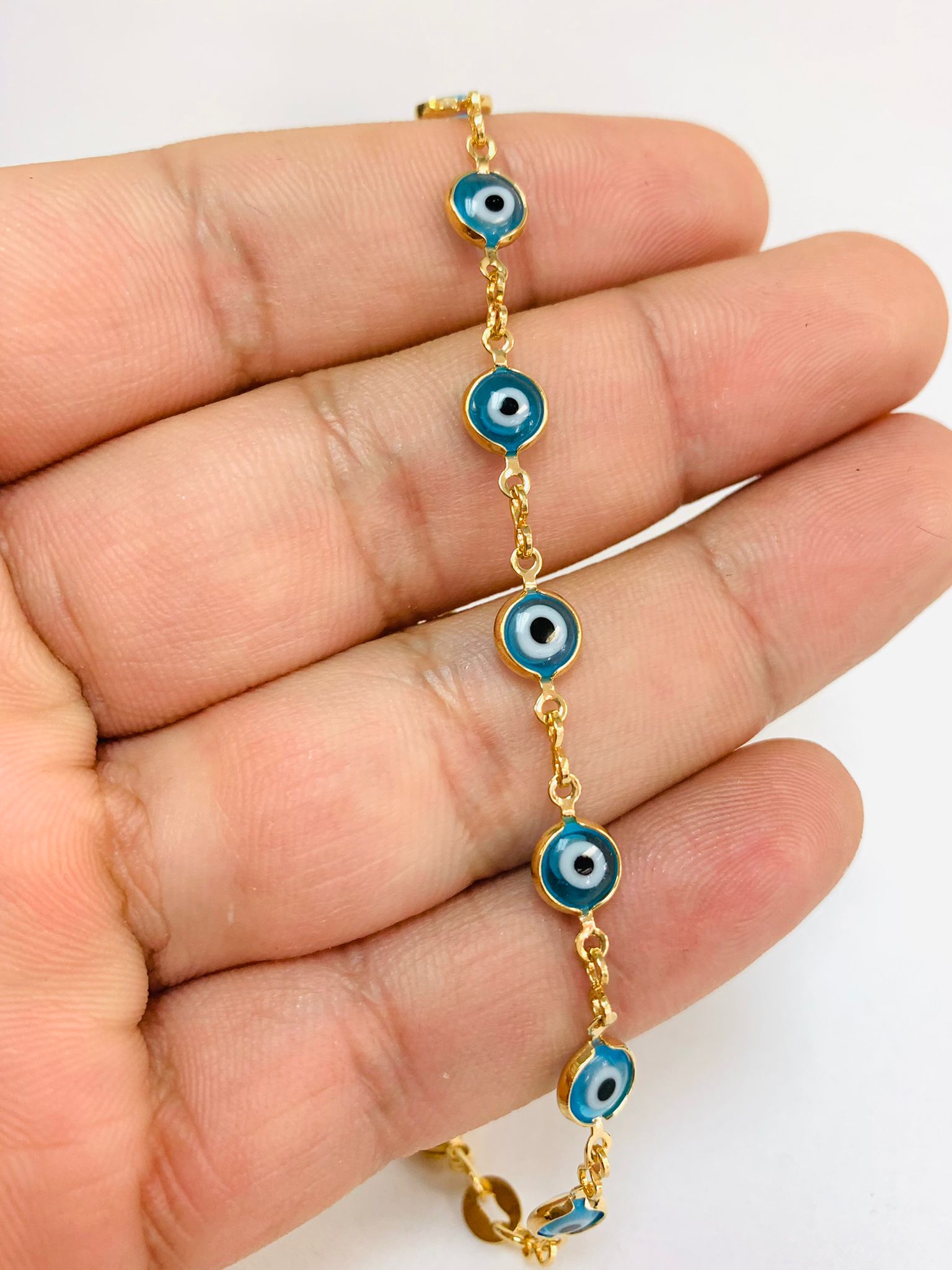 Gold Filled Aquamarine Evil Eye Bracelet for Womens Ladies 7.25" 3g / Protection Good Luck Bracelet / Womens Bracelet / Pulsera Mal de Ojo Para Mujer en Oro Laminado