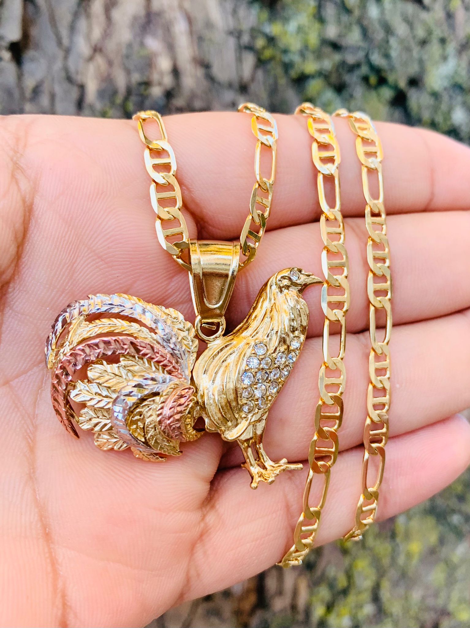 Rooster Necklace Pendant 33x45mm For Mens Figaro 24" 18K GF - Prime Jewelry 269