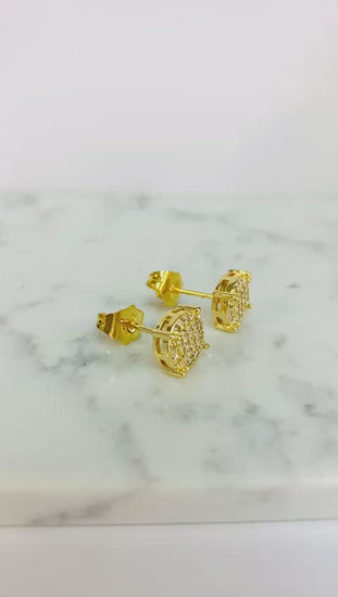 Round Basket CZ Earrings 18K Gold Filled For Mens / CZ Earrings / Mens Earrings / Aretes Para Hombre