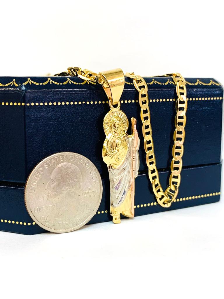 San Judas Necklace / San Judas Pendant / Gold Filled Pendant / Necklace / Catholics Jewelry / Saint Jude Necklace / Cadena y Dije de San Judas en Oro Laminado / Mariner Link Chain