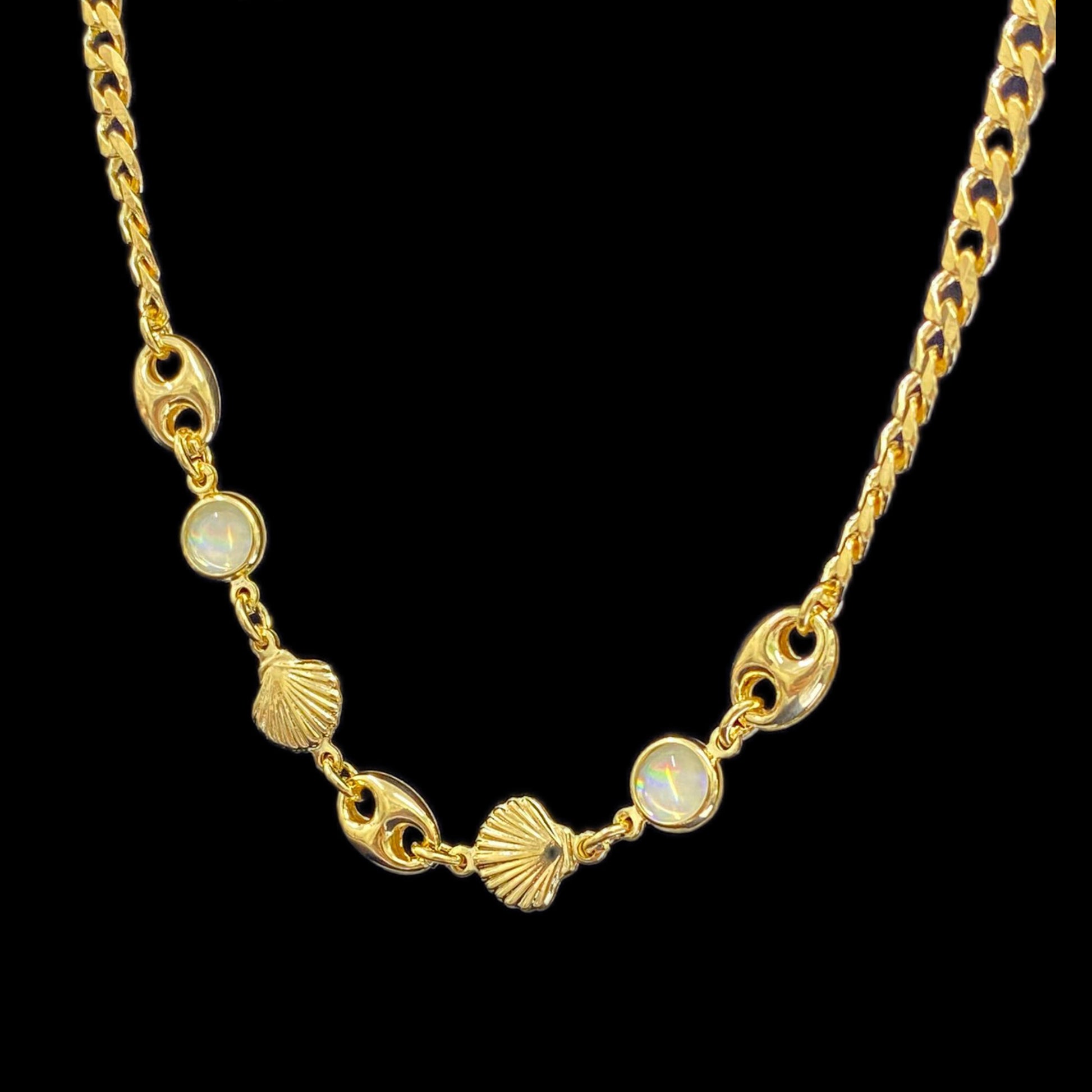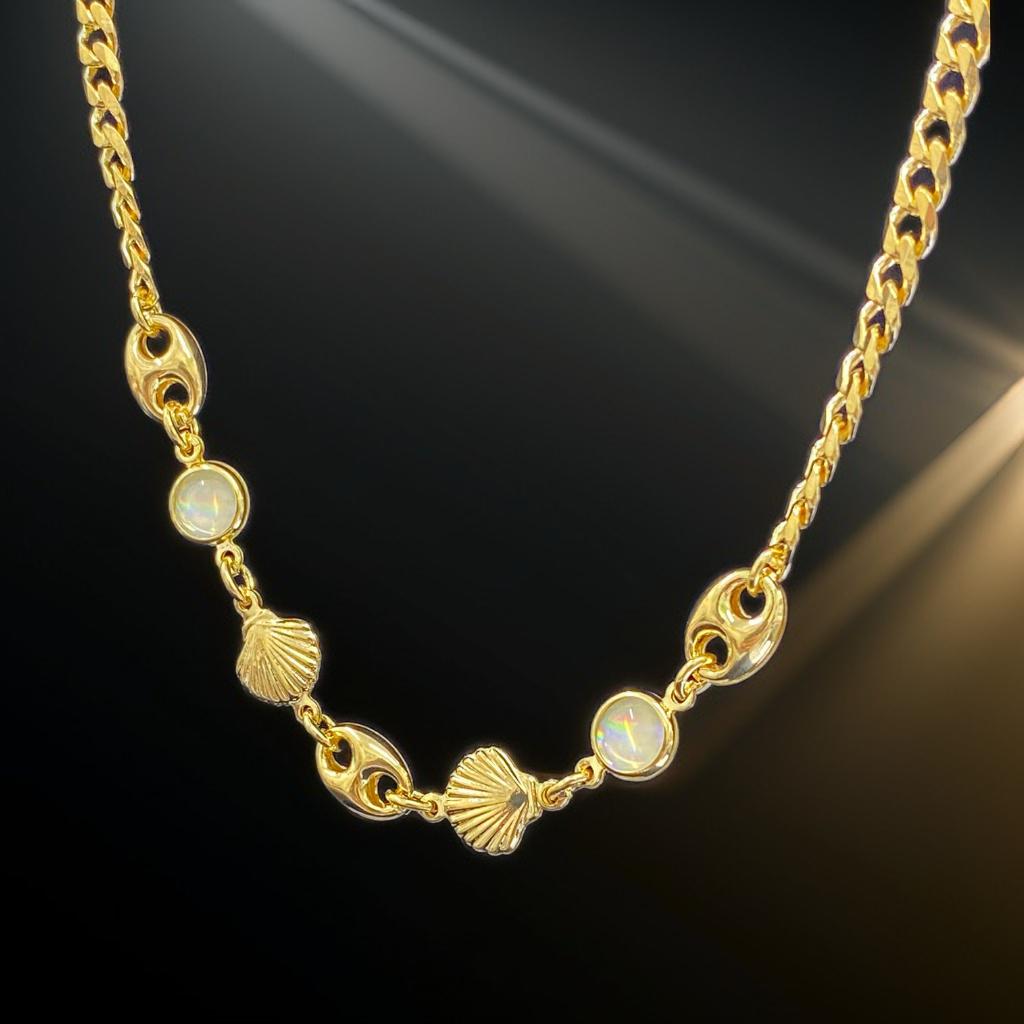 Introducing our stunning Anklet Bracelet adorned with dangling sea shell and pearl charms, exuding coastal elegance and charm. The intricate chains feature a combination of Anchor Links and Curb Links, adding a touch of nautical flair to this exquisite piece. With a length of 10" inches, it drapes beautifully around the ankle, capturing the essence of seaside beauty. Crafted from high-quality 14K Gold Filled material, this anklet radiates luxury and durability, perfect for adding a touch of ocean-inspired sophistication to any summer ensemble.
