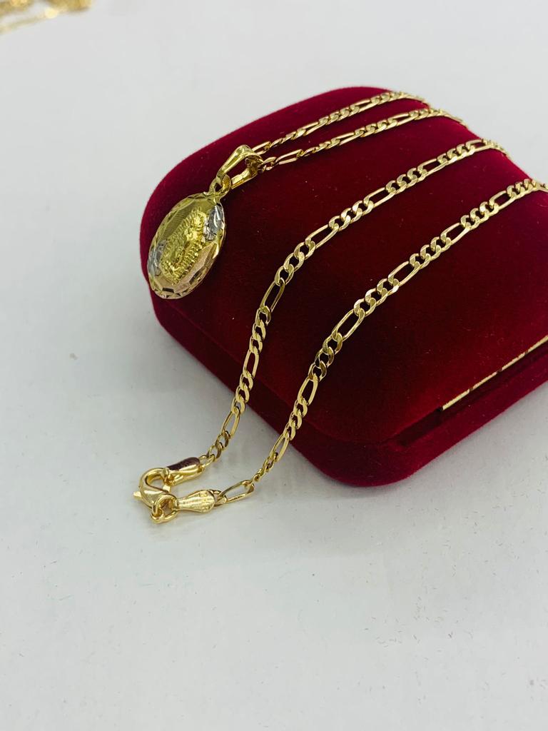 Tri Color Virgen de Guadalupe Pendant Necklace Gold Filled Figaro Chain 20" for Women