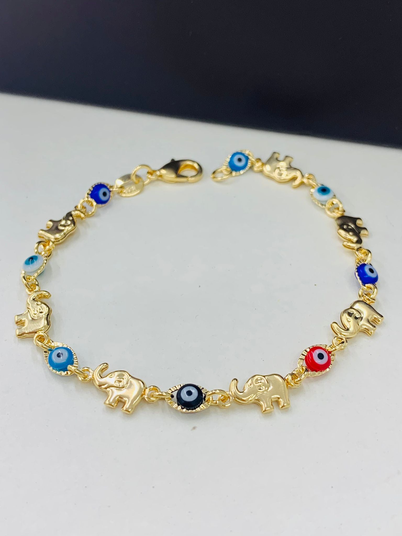 Women's Bracelet Elephant Evil Eye 7.5" / 14K Gold Filled Bracelet for Good Luck & Protection / Everyday Dainty Bracelet / Pulsera para Mujer en Oro Laminado